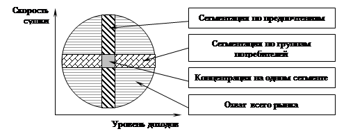 Отбор целевых сегментов: Существует также обслуживание нескольких не связанных друг с другом сегментов. Сегмент, запросы которого полностью не удовлетворены, называется рыночным окном. Сегмент рынка, где компания обеспечила себе господствующее положение, называется рыночной нишей.