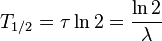 которое означает, что число распадов − dN, произошедшее за короткий интервал времени dt, пропорционально числу атомов N в образце. Период полураспада, среднее время жизни