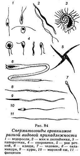 Конечный этап в сперматогенезе связан с дифференциацией, которая заканчивается тем, что каждый из сравнительно больших, сферических неподвижных сперматидов превращается в небольшой вытянутый подвижный сперматозоид.