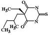 ФК: Пропофол быстро вызывает наркоз после внутривенного введения, по скорости наступления наркоза он сопоставим с тиопенталом натрия, хирургическая стадия наркоза продолжается 4-8 мин. В отличии от барбитуровых производных выведение из наркоза быстрое, не сопровождается развитием посленаркозного сна. Кратковременное действие пропофола, как полагают, обусловлено его быстрым разрушением в печени с образованием неактивных глюкуронидов и сульфатов. ФЭ: Пропофол вызывает кратковременный, но глубокий наркоз. Применяется в амбулаторной практике при вправлении вывихов, экстракции зубов, снятии швов и дренажных трубок, вскрытии небольших абсцессов, выполнении биопсии, диагностических выскабливаниях матки и т.п. В отличие от тиопентала пропофол не вызывает рвоты. Полагают, что ему даже свойствено противорвотное действие. НЭ: 1. Пропофол достаточно легко вызывает угнетение дыхания. 2. В высоких дозах пропофол может вызвать артериальную гипотензию. 3. После введения пропофола возможно кратковременное возникновение мышечных фибрилляций или тремора. 4. При частом введении к пропофолу быстро формируется толерантность (привыкание), которая требует увеличения дозы для обеспечения адекватной анестезии, поэтому пропофол не применяется для поддеражния наркоза при длительных оперативных вмешательствах. ФВ: ампулы 1% эмульсии по 20 мл, флаконы 1% эмульсии 20, 50 и 100 мл, шприцы 1% эмульсии 50 мл. Тиопентал-натрий (Thiopental sodium, Pentotal). Является производным барбитуровой кислоты.