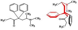 Пиритрамид не вызывает никаких изменений системной гемодинамики как в большом, так и в малом кругу кровообращения, поэтому его используют при выполнении оперативных вмешательств у пациентов с пороками или другой патологией сердца. ФВ: раствор 7,5% амп. по 2 мл. Метадон (Metadone, Dolofine). Применяется с 1946 г. Впервые был синтезирован немецкими фармацевтами во время второй мировой войны. По активности и действию на опиодиные рецепторы практически идентичен морфину. Существует в форме 2 изомеров, при этом левовращающий изомер в 50 раз активнее правовращающего.