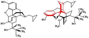 ФЭ: Анальгетический эффект бупренорфина сохраняется 6-8 часов. Лекарство в меньшей степени, чем морфин влияет на ЖКТ, не вызывает спазма желчевыводящих путей и может быть использован для устранения боли при желчной колике. Бупренорфин слабее влияет на продвижение химуса по кишечнику и реже вызывает запор. Наркогенный потенциал бупренорфина низкий, абстиненция протекает менее тягостно, чем при морфиновой зависимости. ФВ: таблетки сублингвальные 0,0002; 0,03% раствор в амп. по 1 и 2 мл. Налорфин (Nalorphine hydrochloride, Anarcon, Norfin). Явился прообразом средств из группы полных антагонистов, т.к. его антагонистический эффект преобладает над агонистическим. МД: Налорфин является крайне слабым агонистом s- и k-рецепторов и антагонистом m-рецепторов. ФК: Налорфин практически полностью метаболизируется при первом прохождении через печень, поэтому применяется исключительно парэнтерально.