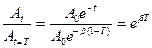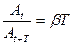А0 – начальная амплитуда при t = 0 е - основание натурального логарифма b = w - циклическая частота свободных затухающих колебаний. Величины циклических частот затухающих и незатухающих колебаний связаны соотношением w2 = w20 - b2. Амплитуда при затухающих свободных колебаниях уменьшается с течением времени по экспоненциальному закону: Аt = A0e -bt (10) Скорость затухания колебательного движения характеризуется декрементом затухания, который равен отношению двух последующих амплитуд, разделенных интервалом времени, равным одному периоду колебания (рис. 2) d = Натуральный логарифм этого отношения называется логарифмическим декрементом затухания: l = ln Определив опытным путем период затухающих колебаний можно вычислить коэффициент затухания b и логарифмический декремент затухания l. Для этого измеряют две амплитуды, отстающие во времени на n периодов, т.е. t = nT. Равенство отношений следовательно ln Отсюда коэффициент затухания b =