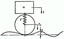 Изобразим движение подвешенной на колесе массы m, когда колесо катится по жесткому пути, имеющему неровности косинусоидальной формы.
