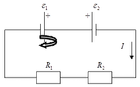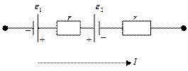 Для замкнутой цепи (рис.2.8) при выбранном направлении тока I сумма ЭДС равно падению напряжений на сопротивлениях (второй закон Кирходера)
