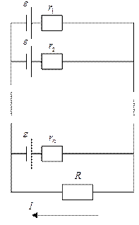 Схема параллельного соединения источников тока в электрическую цепь (рис.2.5.)
