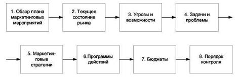 Стратегический план определяет, какими именно производствами фирме имеет смысл заниматься и излагает основные задачи этих производств. Для воплощения же стратегического плана требуется разработка отдельных подробных планов для каждого направления рыночной деятельности фирмы, товара или торговой марки. Все эти планы и принято называть «планами маркетинга». Структура разработки этих планов идентична и включает следующие этапы (рис. 3.4):