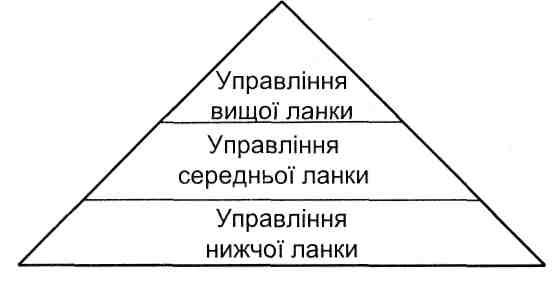 Рис.1.3. Як керівники витрачають свій час Рис. 1.2. Способи представлення рівнів управління Рис. 1.1. Рівні управління Найбільш прийнятий спосіб опису рівнів управління полягає у виділенні керівників (керуючих) низової ланки чи операційних керуючих, керівників (керуючих) середньої ланки і керівників (керуючих) вищої ланки (рис. 1.2.).