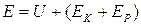 Сумма энергий ЕК и ЕР называется внешней энергией системы, а составляющая U полной энергии системы — энергией покоя, или внутренней энергией. В термодинамике движение системы как целого обычно не рассматривается, поэтому энергией системы оказывается ее внутренняя энергия U. Внутренняя энергия — внутренний параметр термодинамической системы. Она может изменяться только при взаимодействии системы с внешними телами. В изолированной системе, а также вне силовых полей, внутренняя энергия, как следует из закона сохранения энергии, не меняется. Это условие можно написать в виде: U = const. Это означает, что внутренняя энергия однозначно определяется состоянием системы: каждому состоянию системы присуще только одно значение энергии. Изменение энергии при переходе системы из одного состояния в другое описывается соотношением