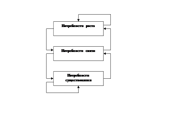 Слайд 12. – Методы удовлетворения потребностей высших уровней К Альдерфер выделял три группы потребностей: - потребности существования; - потребности связи; - потребности роста. Эти три группы потребностей, так же как и в теории А. Маслоу расположены иерархически. Принципиальное различие с теорией Маслоу – движение от потребности к потребности возможно не только вверх (как у Маслоу), но и вниз. Схема восхождения и обратного хода вниз по иерархии потребностей Альдерфера: