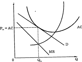 Рис. 9.3. Возможное влияние рекламы на объем производства и средние совокупные издержки Рис. 9.1. Монополистическая конкуренция Это означает, что кривая спроса менее эластична, чем при совершенной конкуренции, но более эластична, чем у чистой монополии. Степень эластичности в условиях монополистической конкуренции зависит как от числа конкурентов, так и от глубины дифференциации продукта (услуг). Таким образом, дифференциация продукта отражается в дифференциации цены. Потребитель, привыкший к потреблению того или иного товара или услуги, не сразу откажется от его покупки даже при небольшом росте цены. Изменит фирме лишь самый расчетливый и меркантильный покупатель. Отрицательный наклон кривой спроса означает, что в условиях монополистической конкуренции производится меньше продукта. Если при совершенной конкуренции производится Qc по цене Рc, то в условиях монополистической конкуренции — Qm по цене Рm (см. рис. 9.1). В течение короткого промежутка времени фирмы могут как получать прибыль, так и нести убытки. Однако отсутствие высоких входных барьеров в отрасль, где фирмы получают устойчивую экономическую прибыль, приводит к тому, что туда устремляются другие предприниматели. В результате в длительном периоде создается ситуация, аналогичная совершенной конкуренции: ни прибыли, ни убытков (экономическая прибыль равна нулю).