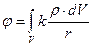 P.S. При непрерывном распределении потенциала (например, объемном) и j может быть найден по формуле: