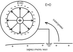 Вещество внутри проводника не влияет на поле (можно организовать полость). Получаем замкнутую проводящую оболочку, внутри которой нет поля. Экранирует всё, что находится внутри, от внешнего электрического поля. II: Е=0 От деформации картина меняется. Заземлим оболочку. Заземлённая проводящая оболочка экранирует внешне пространство от поля заряда, находящегося внутри оболочки.