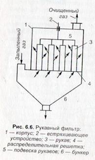 В основе работы пористых фильтров, предназначенных для тонкой очистки воздуха, лежит процесс тонкой фильтрации газов через пористую перегородку, в результате чего пористые частицы задерживаются, а газ полностью проходит сквозь нее. Из пористых фильтров наибольшее распространение получили рукавные фильтры, что обусловлено и созданием в последнее время новых температуростойких и устойчивых к воздействию агрессивных газов тканей, например, стекловолокно выдерживает температуру 250°С.