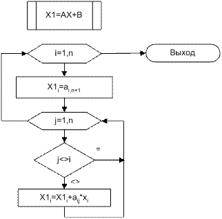 Подпрограмма вычисления вектора на одном шаге итераций (умножение матрицы A на вектор X плюс вектор B)