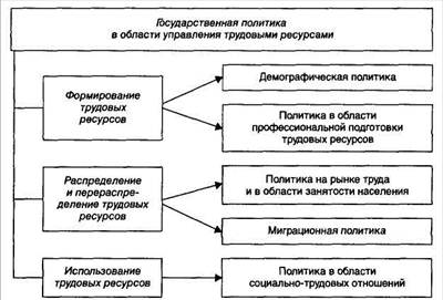 Управления трудовыми ресурсами Основные направления политики государства в сфере Эффективность экономики зависит от того, каковы ее трудовые ресурсы (по количеству и качеству) и насколько эффективно они используются. Государство оказывает регулирующее воздействие на весь процесс воспроизводства трудовых ресурсов: формирование, распределение и перераспределение, а также их использование. Так обеспечивается целостность регулирующего воздействия — его целевая направленность, преемственность и последовательность. Целью государственного регулирования в области управления трудовыми ресурсами является эффективная занятость населения, достигаемая на основе роста уровня и качества жизни. Роль государства состоит в содействии, создании правовых, экономических и институциональных условий, при которых может быть обеспечен достойный уровень жизни граждан. Направления государственной политики в области управления трудовыми ресурсами представлены на рисунке.