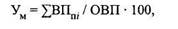 где ВПп i - продукция данной отрасли промышленности, направляемая в другие отрасли для дальнейшей промышленной переработки, руб., ОВП - общий объем продукции, произведенной i -й отраслью, руб.