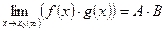 2. Предел произведения функций равен произведению пределов этих функций, т.е.: