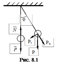 Всевозможные колебательные движения имеют два общих характерных признака: 1. До начала колебаний и после их окончания тело находится в положении равновесия; 2. Наличие силы, которая возникает, как только тело выходит из положения равновесия. Эта сила пропорциональна смещению и направлена в сторону, противоположную смещению тела (направлена к положению равновесия). Для такой силы справедливо Но может случиться, что сила иного происхождения обнаруживает такую же закономерность. Рассмотрим колебания математического маятника (рис. 8.1). Отклоним маятник на некоторый угол j от положения равновесия и разложим силу тяжести - Pt – перпендикулярную нити; - Pn – параллельную нити. Под действием силы Pt шарик будет стремиться вернуться в положение равновесия. Pt=P· sin j. При малых углах sin j @ j и тогда Pt=-m·g·j. Знак «-», т.к. сила Pt препятствует возрастанию угла j. Сила Pt не упругая сила, но по своему действию и характеру аналогична упругой силе. Такая сила называется квазиупругой силой. Несмотря на большое разнообразие колебательных процессов, как по физической природе, так и по степени сложности, все они совершаются по некоторым общим закономерностям и могут быть сведены к совокупности простейших периодических колебаний, называемых гармоническими (от греческого “гармоникс” – стройный). Пусть на некоторое тело массы “m” действует квазиупругая сила Далее Колебательный процесс возможен, если коэффициент при “x” положителен, представим его в виде