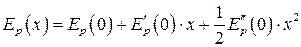 Таким образом, полная энергия гармонического осциллятора пропорциональна площади эллипса, причем коэффициентом пропорциональности служит собственная частота осциллятора. 8.6. Малые колебания системы вблизи положения равновесия. Рассмотрим произвольную механическую систему, положение которой может быть задано с помощью одной величины “x”. Величиной ”x”, определяющей положение системы может быть угол, отсчитываемый от некоторой плоскости или расстояние, отсчитываемое вдоль заданной кривой. Потенциальная энергия такой системы будет функцией одной переменной ”x”: Ep=Ep(x). Выберем начало отсчета таким образом, чтобы в положении равновесия x=0. Тогда функция Ep(x) будет иметь минимум при x=0. Далее разложим функцию Ep(x) в ряд по степеням “x”, причем ограничимся случаем малых колебаний, поэтому высшими степенями “x” можно пренебречь. По формуле Маклорена: