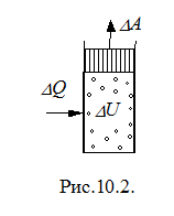 DQ = DU + DA. (10.3) Уравнение (10.3) представляет собой содержание первого начала (закона) термодинамики. Словами его можно выразить следующим образом: количество тепла DQ, сообщенное системе, идет на приращение внутренней энергии системы DU и на совершение системой работы DA над внешними телами. Следует отметить, что в равенстве (10.3) величина U является функцией состояния и однозначно определяется термодинамическими параметрами состояния. Величины Q и A не есть функции состояния. Они зависят не только от начального и конечного состояния системы, но и от пути изменения ее состояния. Из равенства (10.3) следует, что единицей измерения тепла служит джоуль.