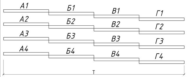 Характеризуется совмещением однотипных работ. «+»: минимальная продолжительность работ. «–»: 1) максимальный расход ресурсов; 2) ухудшаются условия для соблюдения техники безопасности.