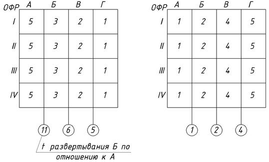 Методы организации работ (мор)ЛЕКЦИЯ №5 Сходящиеся потоки — это такие потоки, в которых ритм каждой последующей работы меньше ритма предыдущей работы. Пусть r A = 5 день; n = 4 r Б = 3 дня; r В = 2 дня; r Г = 1 дней. Для определения начала работы Б, которая обеспечила непрерывную работу бригады Б, рассчитаем период развертывания. Для этого исходные данные представим в виде матрицы 4×4 в системе ОФР.