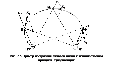 Это и будет искомая силовая линия (на рисунке изображены лишь три последовательных положения заряда q 0и три соответствующих вектора напряжённости: