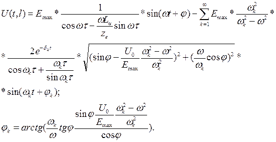 Рассмотрим наиболее неблагоприятную с точки зрения развития событий ситуацию: К.З. отключается Q2; 2) отключается Q1. Напряжение в точке после размыкания контактов U (x)= U н (x) – D U (x). D U (x) изменяется в точке после размыкания контактов; U н (l) = 0.