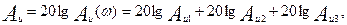 По результатам численных расчетов строим сначала АЧХ, представив в логарифмическом масштабе коэффициенты усиления и частоты, получим для каждого каскада АЧХ с максимальным коэффициентом усиления на средних частотах и участок его спада с наклоном 20 дБ на декаду. Такая форма АЧХ называется логарифмической АЧХ (ЛАЧХ).