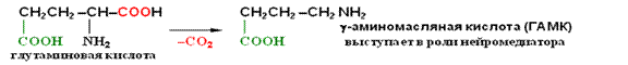 При этом надо помнить о том, что аминогруппа легко окисляется, поэтому, например, для получения галогенангидридов аминокислот требуется предварительное ацилирование аминогруппы. После получения галогенангидрида ацильная защита гидролизуется. Одна из важнейших реакций в организме — декарбоксилирование аминокислот. Отщепление СО2 происходит под действием особых ферментов — декарбоксилаз: