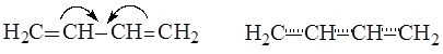 Делокализация p-электронной плотности в бутадиене-1,3 В реальной молекуле бутадиена-1,3 нет двойных или ординарных связей, все четыре р-электрона делокализованы по всей системе сопряжения, охватывающей углеродный скелет. Таким образом, под термином сопряжение понимают делокализацию (перераспределение) p-электронной плотности в молекуле, приводящую к изменению длин связей и увеличению ее устойчивости за счет выделения энергии. Различают два типа сопряжения: p,p- и p,p-сопряжение, которые могут возникать как в циклических, так и ациклических молекулах. p,p-Сопряжение возникает, если в сопряжении участвуют р-орбитали, образующие p-связи. В рассмотренной выше молекуле бутадиена-1,3 в сопряжении участвовали четыре электрона атомов углерода, расположенные на р-орбиталях, образующих p-связи, таким образом, можно сделать вывод о том, что в этом случае имеет место p,p-сопряжение.