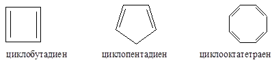 Хотя все структуры являются плоскими, циклопропен относят к неароматическим соединениям (нет сопряженной системы), циклопропенил-радикал также является неароматическим соединением (в сопряжении 3 электрона), циклопропенил-анион относится к антиароматическим соединениям, так как в сопряжении участвуют 4 электрона. Циклопропенил-катион является ароматической системой, так как в результате сопряжения на трех атомах углерода делокализованы 2 электрона, т.е. N(e) = 4n+2=2, n = 0. Циклобутадиен и циклооктатетраен являются антиароматическими соединениями, так как в сопряжении (p,p-сопряжение) участвуют, соответственно, 4 и 8 электронов, т.е N(e) = 4n, n=1; n=2). Циклопентадиен является неароматическим соединением, так как нет сопряженной системы, охватывающей все атомы цикла (один из атомов углерода в sp3-гибридизации).