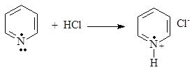 Необходимо отметить разную устойчивость пиррола и пиридина в кислой среде. Пиррол в присутствии кислот подвергается полимеризации, так как в результате присоединения протона пиррольным атомом азота происходит разрушение сопряженной системы: 2р-электрона атома азота идут на образование связи с протоном по донорно-акцепторному механизму и ароматичность теряется. Пиридин, как и пиррол, также подвергается протонированию, но, в отличие от пиррола, пиридиновый цикл сохраняет ароматичность и устойчивость, так как для образования связи с протоном предоставляется пара электронов, расположенная на гибридной орбитали, которая в сопряжении не участвует.