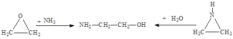 Коламин может быть легко синтезирован из этиленоксида или этиленимина: