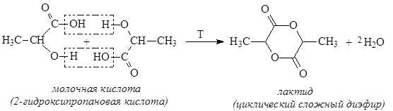 При нагревании a-гидроксикислоты образуют лактиды как результат межмолекулярного отщепления воды: