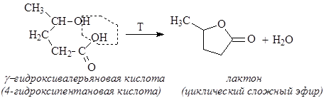 Легкость отщепления NH3 или H2O обусловлена возникновением в a-положении С-Н кислотного центра из-за влияния двух электроноакцепторных заместителей. Нагревание g-амино и g-гидроксикислот приводит к образованию пятичленных гетероциклов – лактамов и лактонов - в результате внутримолекулярной дегидратации: