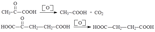 Обнаружить енольную форму кетокислот можно с помощью качественных реакций. При взаимодействии с FeCl3 енольный гидроксил (как и фенольный) дает характерное фиолетовое окрашивание, а при взаимодействии с бромной водой наблюдается ее обесцвечивание за счет протекания реакции по двойной связи. Оксокислоты, в молекулах которых оксогруппа находится в a- или b-положениях, легко декарбоксилируются. a-Оксокислоты подвергаются окислительному декарбоксилированию под действием мягких окислителей (Cu(OH)2, Ag2O и т.п.):
