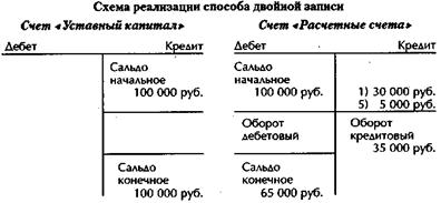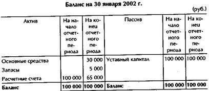 Операция 1. ООО «НБ А» 15 января 2002 г. закупило технологическое оборудование для производства полиграфической продукции на сумму 30 000 руб. Данная операция вызывает изменения на счетах «Вложения во внеоборотные активы» и «Расчеты с поставщиками и подрядчиками». На счете «Вложения во внеоборотные активы» произошло увеличение средств. Счет активный, так как на нем отражаются средства, вложенные во внеоборотные активы. Увеличение на активных счетах отражается по дебету счета. Одновременно произошло увеличение задолженности поставщикам за полученные материальные ценности (технологическое оборудование). Счет «Расчеты с поставщиками и подрядчиками» — пассивный, поскольку на нем отражается кредиторская задолженность поставщикам за полученное технологическое оборудование. Увеличение по пассивным счетам отражается по кредиту счета. Хозяйственная операция оформляется бухгалтерской проводкой: Дебет счета «Вложения во внеоборотные активы» 30 000 руб. Кредит счета «Расчеты с поставщиками и подрядчиками» 30 000 руб. Операция 2. ООО «НБА» 20 января 2002 г. заплатило за полученное технологическое оборудование 30 000 руб. Операция вызывает изменения по счетам «Расчеты с поставщиками и подрядчиками» и «Расчетные счета». Произошло уменьшение задолженности поставщикам за полученное технологическое оборудование. Счет «Расчеты с поставщиками и подрядчиками» — пассивный, уменьшение в пассивных счетах отражается по дебету счета. Вместе с тем произошло уменьшение количества денежных средств на расчетном счете ООО «НБ А», так как деньги были перечислены поставщику. Счет «Расчетные счета» — активный, на нем отражаются денежные средства организации. Уменьшение по активным счетам отражается по кредиту счета. Хозяйственная операция отражается бухгалтерской проводкой: Дебет счета «Расчеты с поставщиками и подрядчиками» 30 000 руб. Кредит счета «Расчетные счета» 30 000 руб. Операция 3. ООО «НБА» ввело 25 января 2002 г. закупленное технологическое оборудование в эксплуатацию. Операция вызывает изменения по счетам «Вложения во внеоборотные активы» и «Основные средства». Произошло уменьшение вложений во вне-оборотные активы, поскольку эти средства стали учитываться в составе основных средств, стоимость которых увеличилась. Счет «Вложения во внеоборотные активы» — активный. Уменьшение по активным счетам отражается по кредиту счета. Счет «Основные средства» — активный, на нем отражаются основные средства организации. Увеличение по активному счету отражается по дебету счета. Хозяйственная операция отражается проводкой: Дебет счета «Основные средства» 30 000 руб. Кредит счета «Вложения во внеоборотные активы» 30 000 руб. Операция 4. На склад ООО «НБА» 26 января 2002 г. от поставщика поступила бумага. Эта хозяйственная операция вызывает изменения по счетам «Материалы» и «Расчеты с поставщиками и подрядчиками». Произошло увеличение запаса материалов на складе и одновременно увеличение задолженности поставщикам за полученные материалы. Счет «Материалы> — активный, на нем отражаются средства организации. Увеличение по активным счетам отражается по дебету счета. Счет «Расчеты с поставщиками и подрядчиками» — пассивный. Увеличение по пассивным счетам отражается по кредиту счета. Хозяйственная операция оформляется бухгалтерской проводкой: Дебет счета «Мат