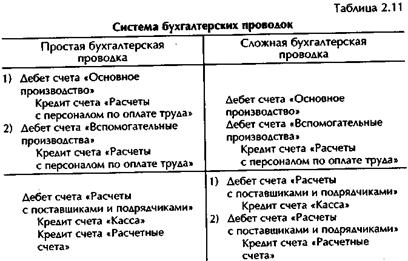 Сложные проводки можно представить как систему простых бухгалтерских проводок (табл. 2.11).