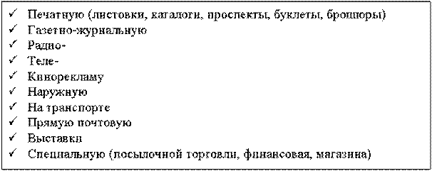 Существуют различные виды рекламы. Рассмотрим некоторые из них, наиболее часто используемые в практике. По функциям и целям выделяют следующие группы реклам:
