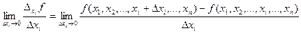 Рассмотрим изменение функции Определение 1.7. Частной производной функции Обозначения: Таким образом, частная производная функции нескольких переменных определяется фактически как производная функции одной переменной – хi. Поэтому для нее справедливы все свойства производных, доказанные для функции одной переменной. Замечание. При практическом вычислении частных производных пользуемся обычными правилами дифференцирования функции одной переменной, полагая аргумент, по которому ведется дифференцирование, переменным, а остальные аргументы – постоянными. Примеры. 1. z = 2 x ² + 3 xy –12 y ² + 5 x – 4 y +2, 2. z = xy, 3.