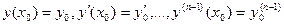 если в окрестности начальных значений (х0, у0, у′0 ,…, у0(п-1)) функция f является непрерывной функцией всех своих аргументов и удовлетворяет условию Липшица по всем аргументам, начиная со второго. Замечание 1. Так же, как и для дифференциального уравнения 1-го порядка, задача отыскания решения уравнения (18.2), удовлетворяющего условиям (18.3), называется задачей Коши. Замечание 2. Теорема 18.1 утверждает существование частного решения уравнения (18.2), удовлетворяющего данным начальным условиям. С геометрической точки зрения это соответствует существованию интегральной кривой, проходящей через точку