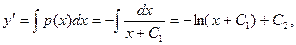 Из этого уравнения можно найти р = р (х, С1, С2,…, Сn-k), а затем найти у с помощью интегрирования k раз функции р = р (х, С1, С2,…, Сn-k).