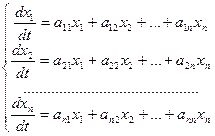 Определение 23.1. Система дифференциальных уравнений называется линейной, если она линейна относительно всех неизвестных функций и их производных. В частности, система линейных уравнений первого порядка с постоянными коэффициентами имеет вид: