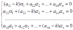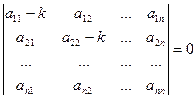 что представляет собой уравнение п – й степени относительно k, называемое характеристическим. Если все корни характеристического уравнения различны, то, подставляя их последовательно в систему (23.8), можно найти соответствующие им значения