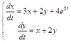 k1 = k2 = 3. Пусть x = (c1 + c2 t) e3t, y = (c3 + c4 t) e3t. Выразим постоянные с3 и с4 через с1 и с2. Для этого подставим найденные решения в одно из уравнений системы и приравняем коэффициенты при e3t и te3t: (3 c1 + c2 + 3 c2t) e3t = (2 c1 + c3) e3t + (2 c2 + c4) te3t, c3 = c1 + c2, c4 = c2. Итак, общее решение системы получено в форме: x = (c1 + c2 t) e3t, y = (c1+ с2 + c2t) e3t. Замечание. Для неоднородной системы (23.1) общим решением, так же как для неоднородного уравнения, будет сумма общего решения соответствующей однородной системы и частного решения неоднородной системы. При подборе частных решений справедлив принцип суперпозиции.