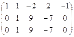 Теперь из второй и третьей строк вычтем первую, умноженную соответственно на 2 и 5: из третьей строки вычтем первую; получим матрицу