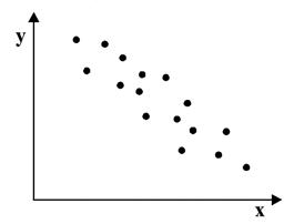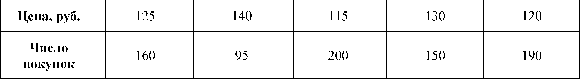 Если график имеет вид а), то это говорит о наличии прямой корреляции, в случае, если он имеет вид б) - корреляция обратная. Отсутствие корреляции тоже можно приблизительно определить по виду графика - это случай в). С помощью коэффициента корреляции можно посчитать насколько тесная связь существует между величинами. Пусть, существует корреляция между ценой и спросом на товар. Количество купленных единиц товара в зависимости от цены у разных продавцов показано в таблице: