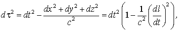 где dl - путь частицы в системе I, - мгновенная скорость частицы. Окончательно